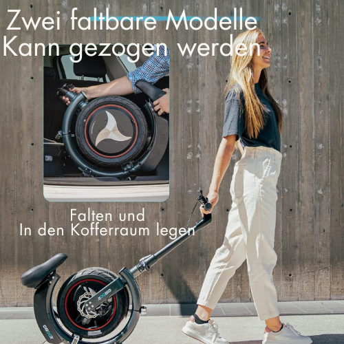 Dank seines innovativen Faltdesigns bietet Rydexo außergewöhnliche Vielseitigkeit. Es lässt sich auf zwei Arten zusammenklappen: Sie können es wie einen Koffer ziehen oder vollständig zu einer kompakten, runden Form falten und so bis zu 50 % Platz im Kofferraum oder in der Wohnung sparen. Perfekt für alle, die Praktikabilität ohne Kompromisse beim Stil suchen.